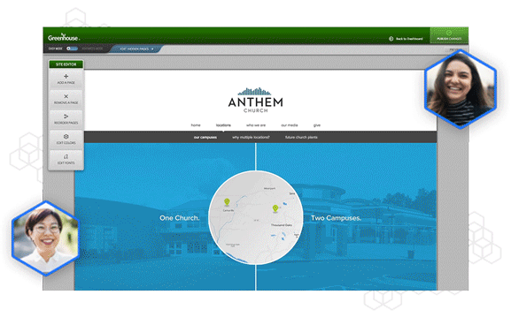 Choose a theme that reflects your church and then easily customize colors, fonts, layouts, and more.
